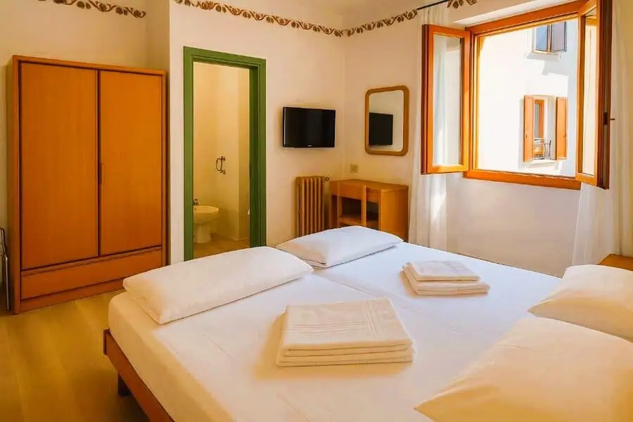 Rooms are simple, bright, and comfortable, giving you everything you need after a day wandering Malcesine. Some rooms even have small balconies, offering a cozy spot to enjoy the old town views.