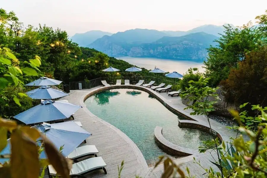 The real highlight here is the swimming pool overlooking Lake Garda—we loved taking a morning dip while soaking in Mount Baldo in the background.